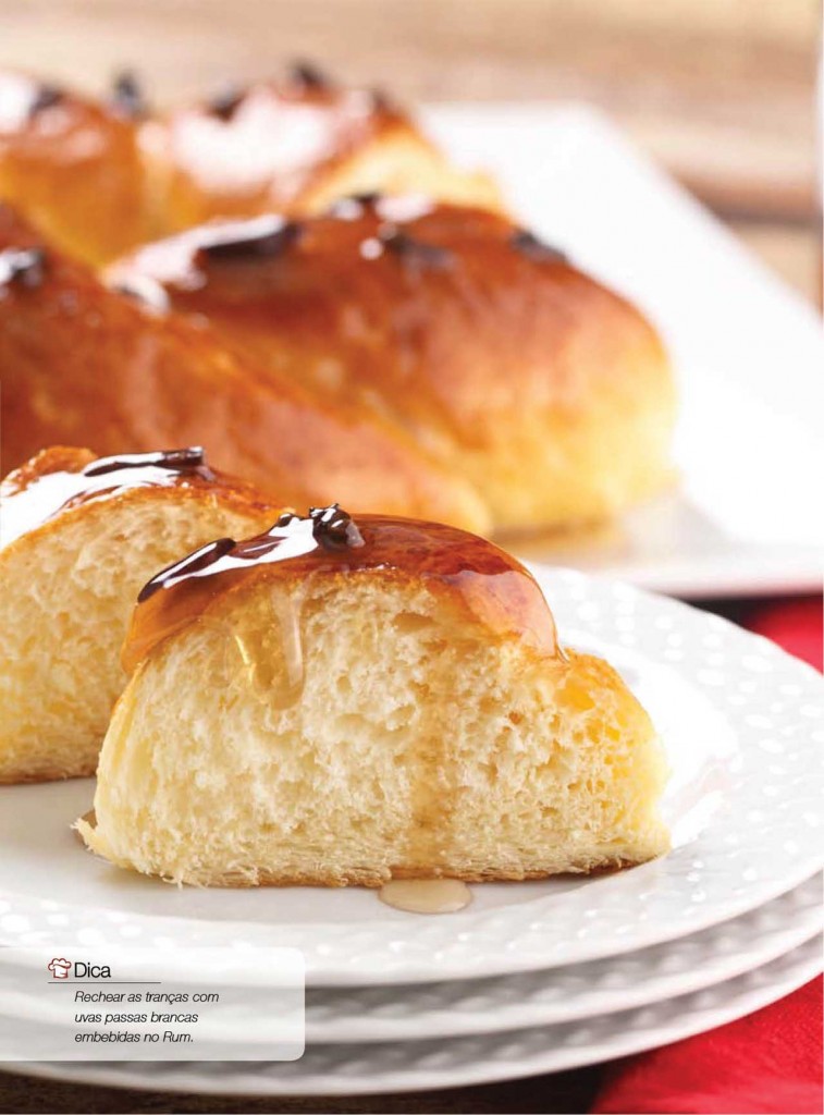Dica: Rechear as tranças com uvas-passas brancas embebidas no rum.